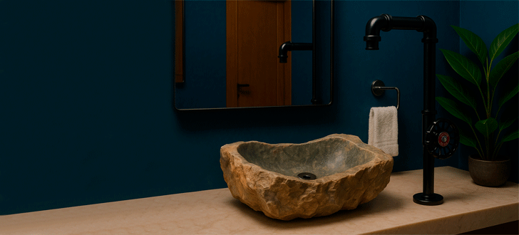 Se você tem uma personalidade autêntica, aprecia referências naturais e gosta de acompanhar as principais tendências de decoração, essa combinação é perfeita. A cuba de pedra-sabão junto da torneira rústica trazem harmonia, força e identidade visual para o seu banheiro — transformando o espaço em uma verdadeira extensão do seu estilo.